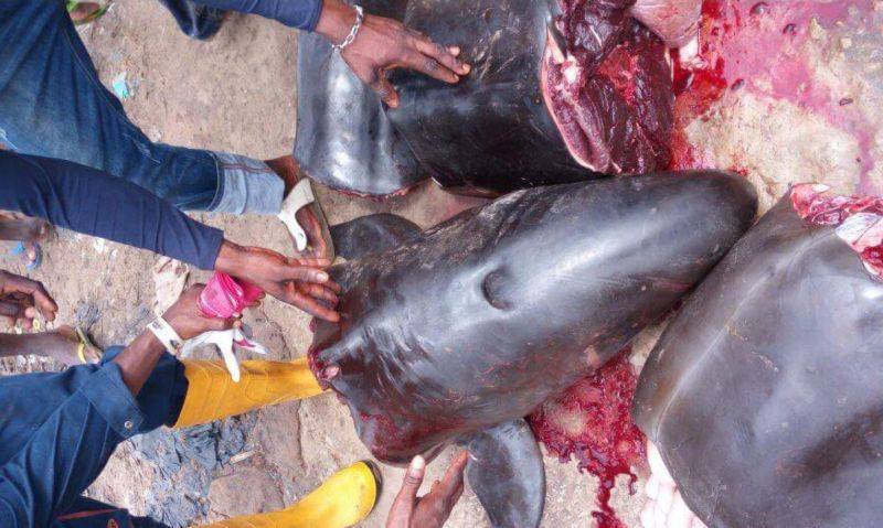 В нигерийском штате Дельта на побережье выбросило огромного дельфина. В любой другой стране с ним устроили бы фотосессию или отпустили бы обратно в океан. Нигерийцы же поступают практичнее: рубят его на части и потом жрут. Выбросить в воду обед для всей деревни — несусветная глупость.