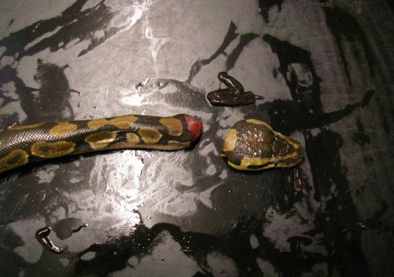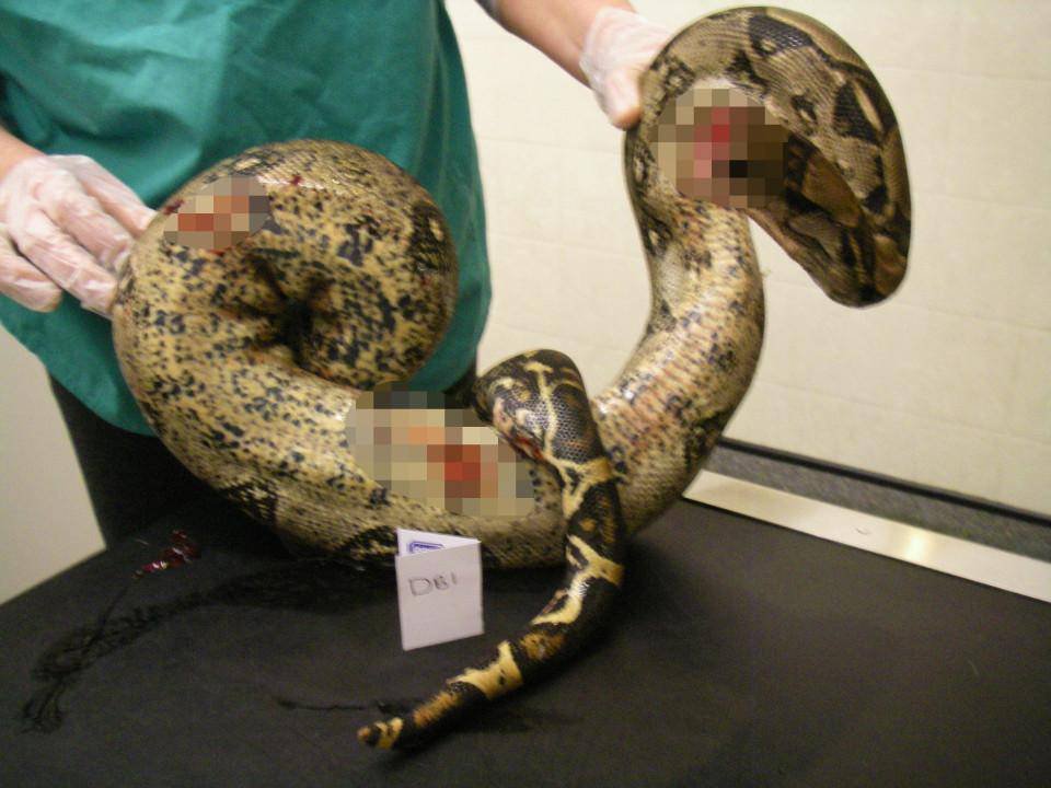25 летняя британка отрезала голову своему удаву, положила её в карман, намотала змею вокруг шеи и пошла гулять с ним по городу. Когда её задержали, девушка ввела в ступор полицейских объяснением своих действий. Оказывается, дама переживала за своего самого любимого питомца, так как со дня на день могла остаться без крыши над головой, а своим близким она не доверяла уход за рептилией, считая, что они за ней будут ухаживать хуже, чем она, поэтому лучшим выходом оказалось обезглавить змею.