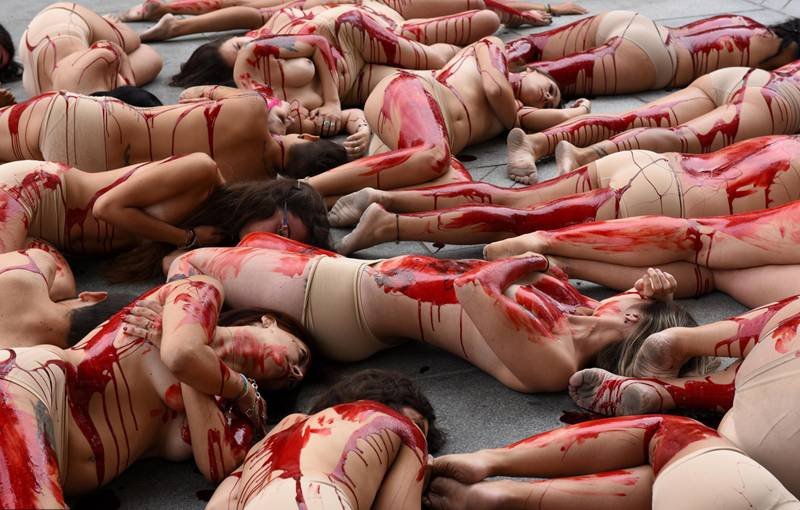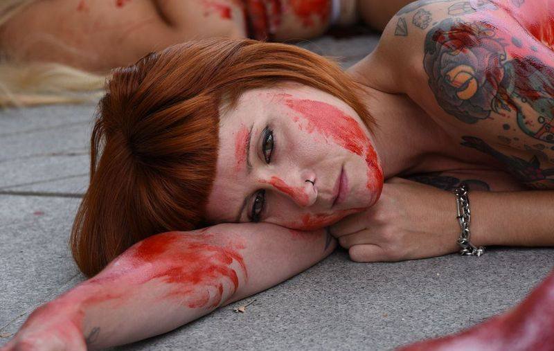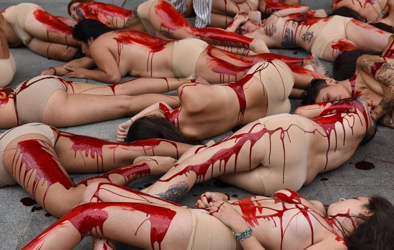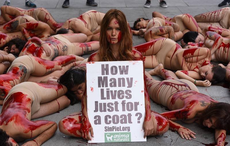 Сторонники прав животных AnimaNaturalis собрались после сообщений, что американские ученые обнаружили настоящую собачью и кошачью шерсть в пальто, якобы сделанных из синтетических материалов. Около 30 зоозащитников разделись до нижнего белья, облились бутафорской кровью и притворились мертвыми в центре Мадрида, так как этот город является одним из крупнейших рынков по продажам шуб в Испании. Согласно информации на сайте Animanaturalis, группа протестующих призывает испанское правительство более строго контролировать происхождение шкур и состав одежды.