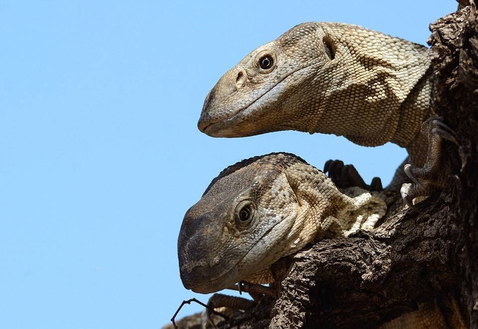 Эта парочка варанов поступила более мудро, разместилась для спаривания на дереве: