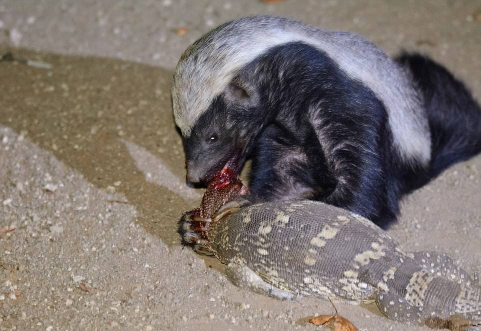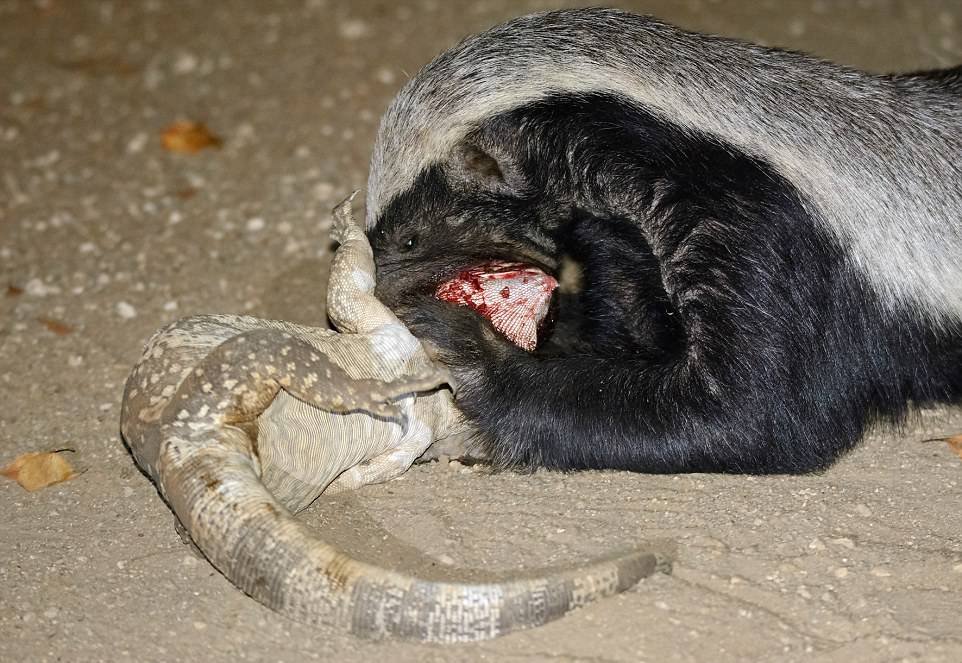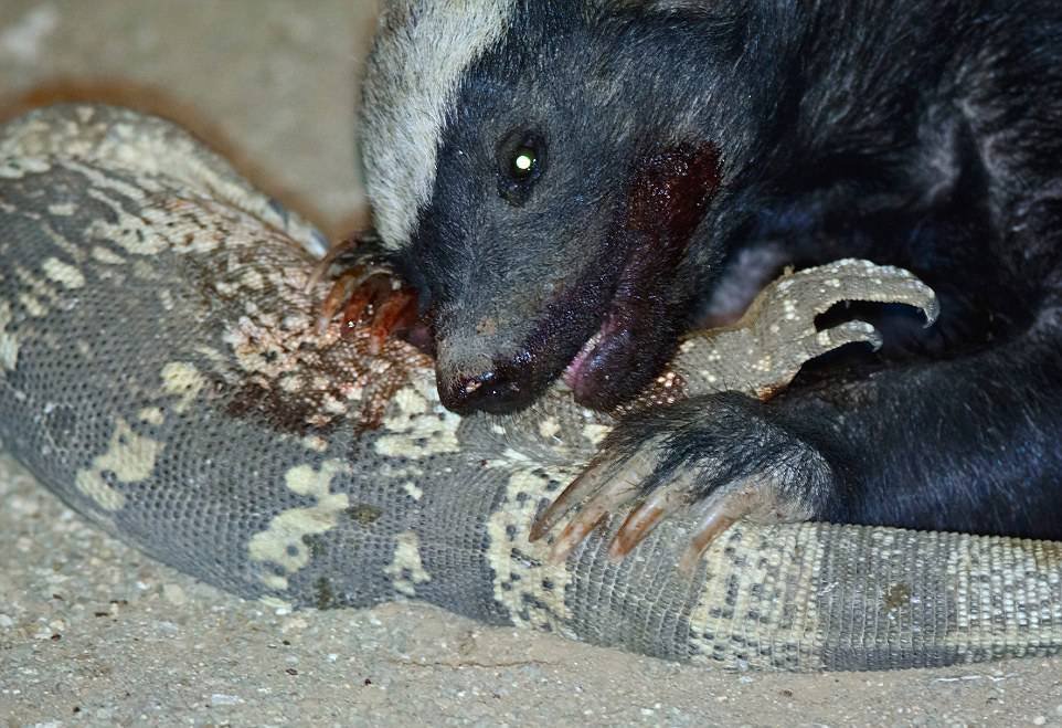 Парочка варанов расположилась на тепленьком песочке для плотских утех, но в животном мире даже во время спаривания расслабляться нельзя. На их буду эту идиллию заметил медоед, судьба одно из партнеров была предрешена, он стал едой голодного зверька. Драматические кадры снял 43-летний внештатный фотограф дикой природы Лисл Мулман (Lisl Moolman) в национальном парке Крюгер в Южной Африке.