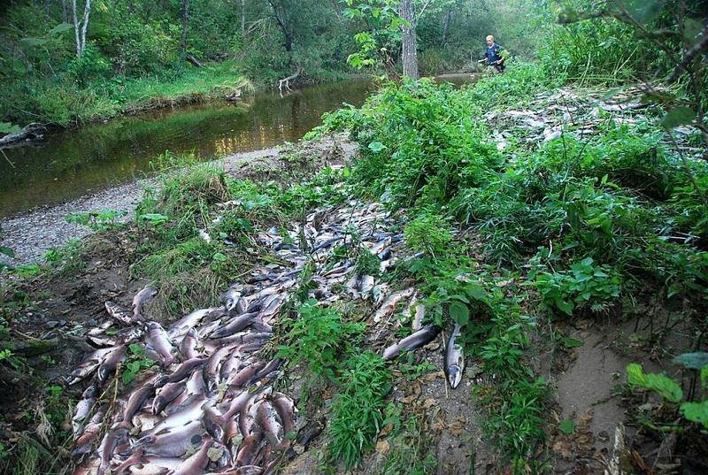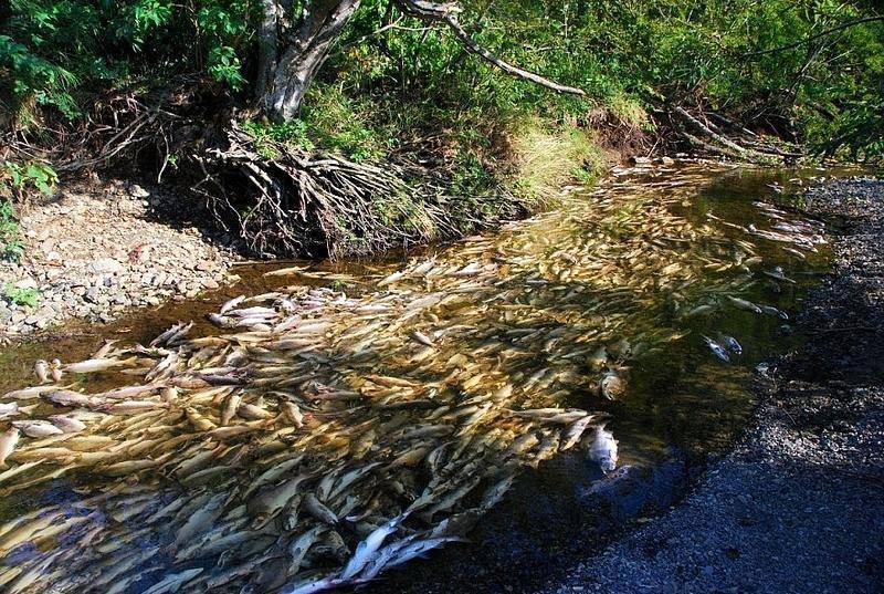 Во время нереста рыба становится легкой приманкой для браконьеров, в это время ее можно ловить хоть руками. Браконьеры не упускают возможности сорвать куш, однако их интересует не столько рыба, сколько икра. По этой причине рыбу попросту выбрасывают. Далее предлагаем взглянуть на снимки, которые были сделаны у берегов нерестовых рек Сахалина во время нереста.