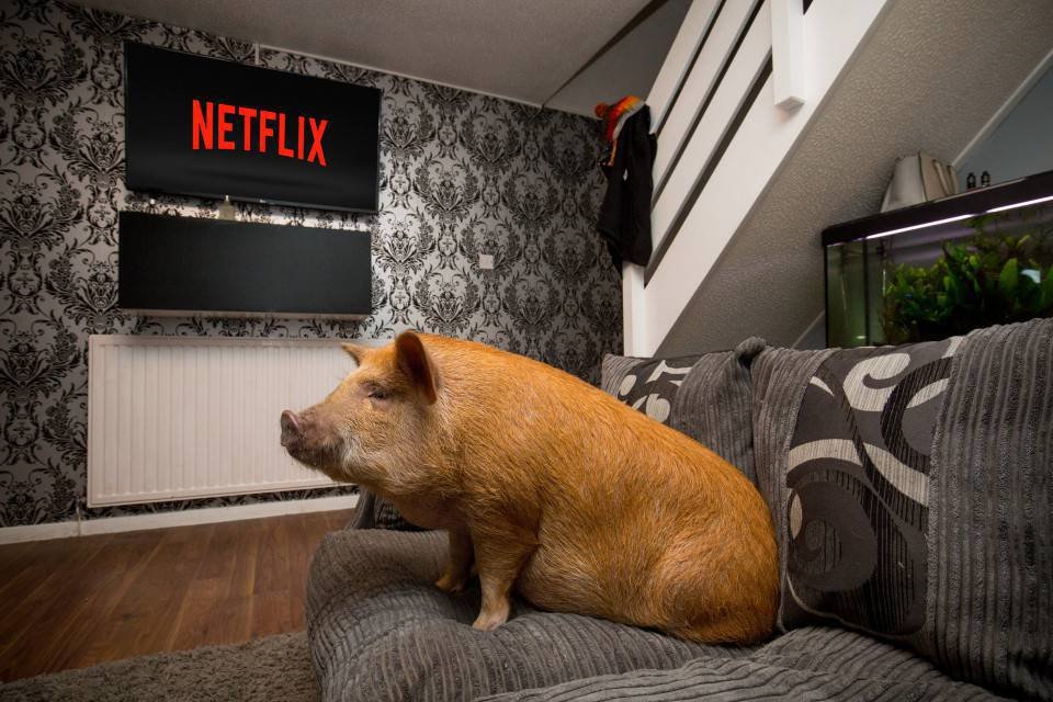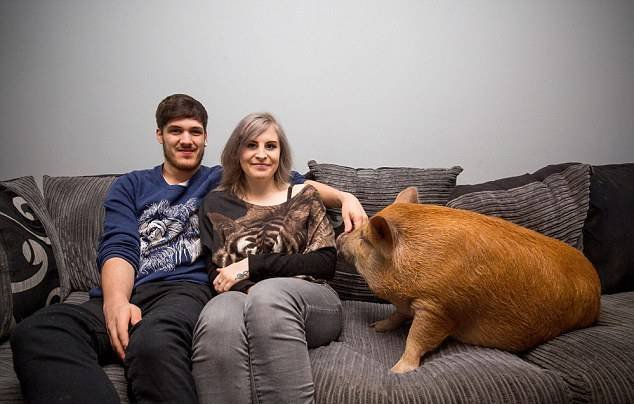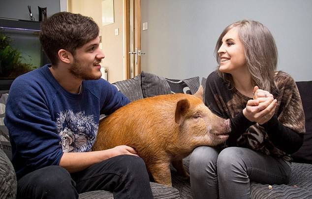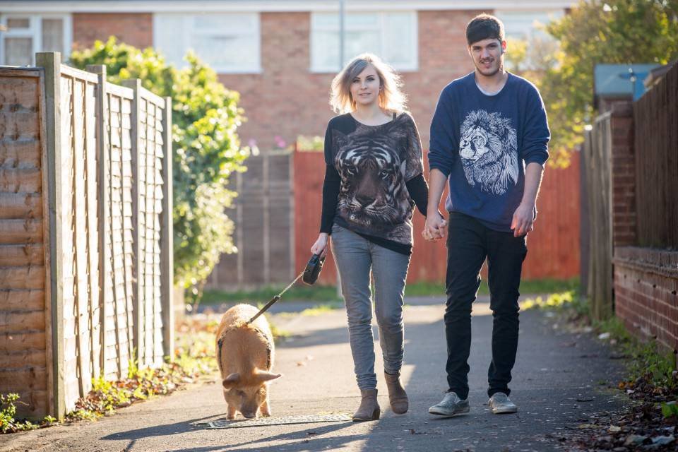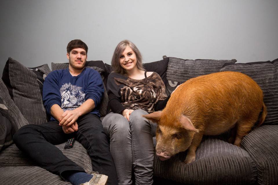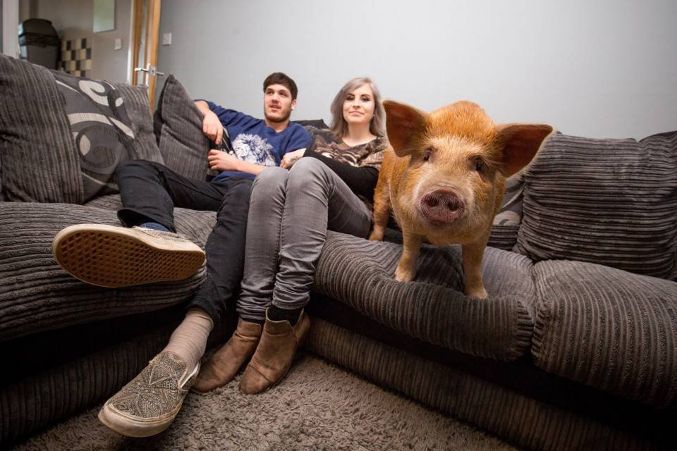 22-летняя Hannah Kembrey и 21-летний Mike Baxter из Worle, Сомерсет, приобрели крохотного поросенка Пенни, когда ему было всего восемь недель от роду. Сейчас девятимесячная свинья весит 30 килограмм, она любит лежать на диване и смотреть сериалы. Свинья устраивается на диван, ест сыр чеддер, особенно любит смотреть "Игру престолов" и "Ходячих мертвецов". Пара имеет разрешение выгуливать 30-килограммовую свинью по улицам города, где она уже стала местной знаменитостью.