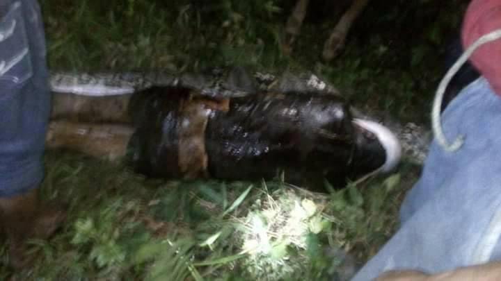 Они нашли питона, лежащего на заднем дворе Акбара с гигантским животом в ночь на понедельник. Заподозрив неладное, местные жители вскрыли живот питона, внутри они обнаружили труп молодого человека.