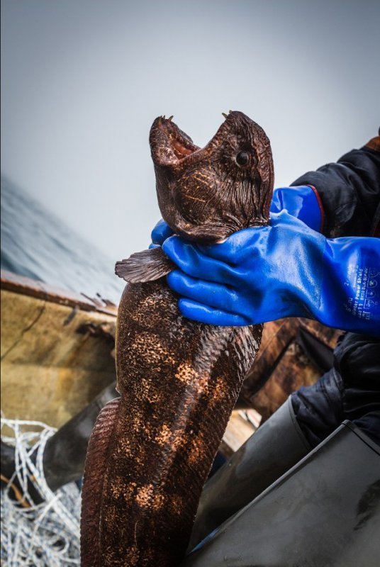Кстати, в крабовой ловушке, куда попалась эта зубатка, на крабов было страшно смотреть - одни ошметки...
