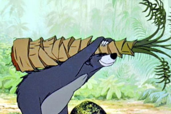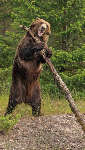 Забавные кадры снял фотограф Shayne McGuire на ферме в штате Монтана в США. Пятилетний гризли Бруно, словно подражая своему собрату Балу из мультфильма «Книга джунглей», взял ствол старого дерева и усердно чесал им спину.