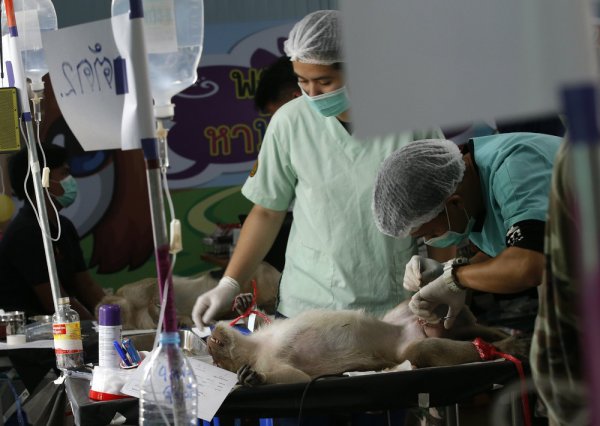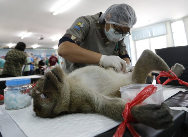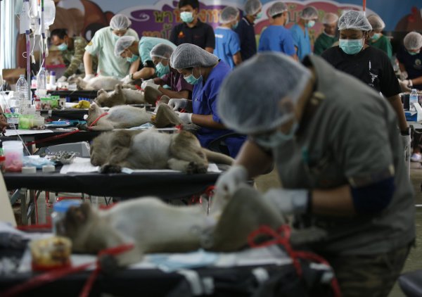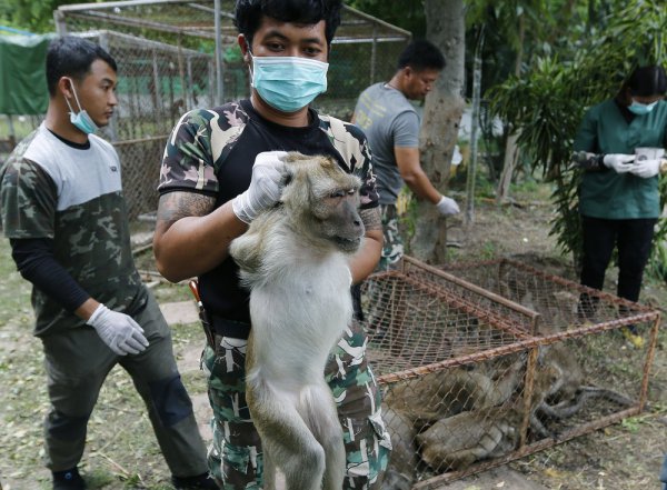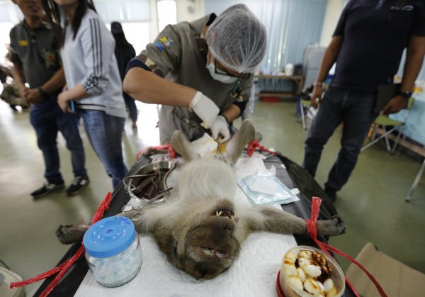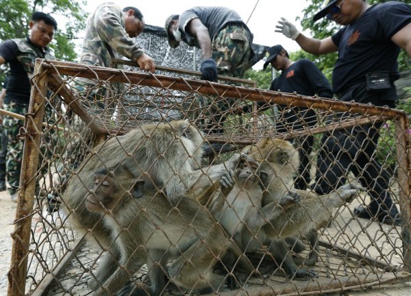 В Таиланде развелось слишком много обезьян, они обнаглели до такой степени, что стали грабить туристов, воровать еду из ресторанов и влезать в жилые дом. Тайские ветеринары из департамента национальных парков дикой природы и сохранения растений запустили программу по контролю рождаемости среди обезьян. Их отлавливают, сажают в клетки, затем стерилизуют.