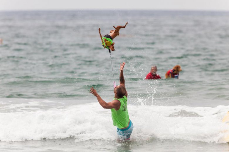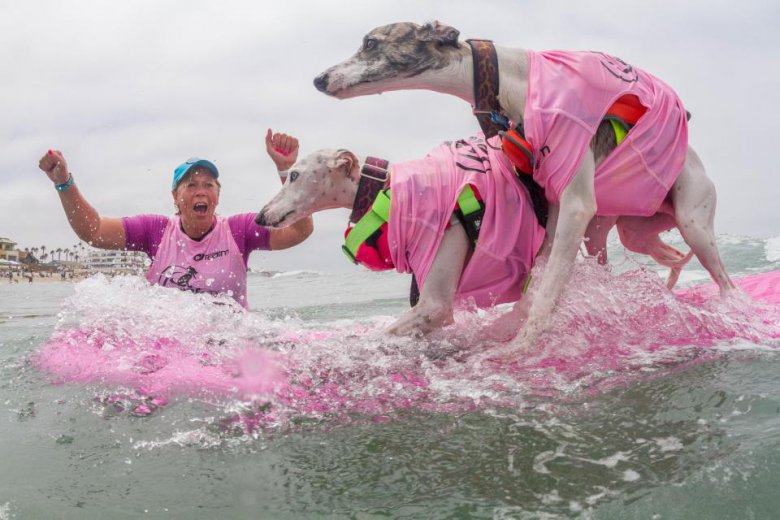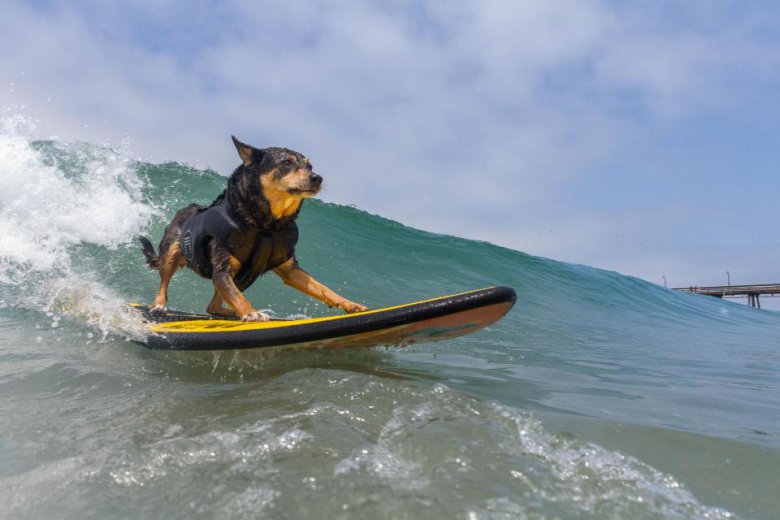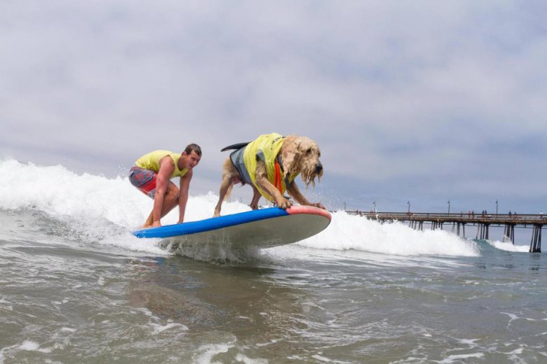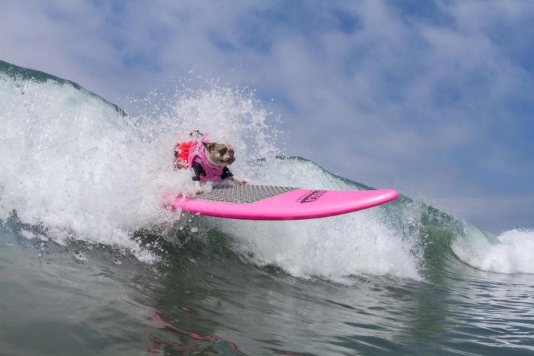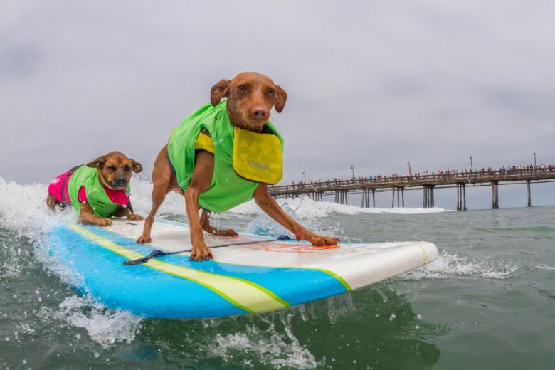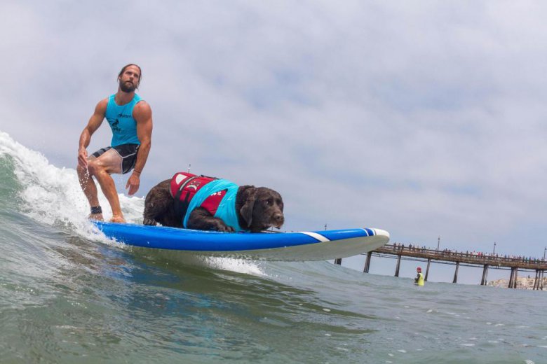 В субботу в Сан-Диего, Калифорния, прошли соревнования по серфингу среди собак Imperial Beach Surf Dog. Песикам давалось 10 минут, чтобы поймать волну. Они выступали как поодиночке, так и в тандеме. Команда судей начисляла баллы за то, насколько уверенно собака держалась на доске и за время проведенное на серфе. Мероприятие прошло уже в 12-й раз, все вырученные средства пойдут на благотворительность.
