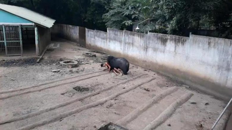 Свидетели инцидента запечатлели шокирующую картину, как дикий зверь наказывал мужчину, истязая его на своей территории.