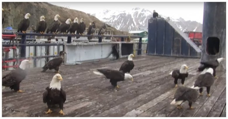Длина острова Уналашка составляет более ста километров, но орланы облюбовали только несколько километров. Конечно, это связано с едой. Дело в том, что город расположен в непосредственной близости от порта, а рыба является одним из главных продуктов питания орланов. Вот они и нападают на лодки, которые подплывают на отгрузку, и хватают столько рыбы, сколько успевают, пока их не прогонят. У них есть еще одно любимое место – полигон. Орланы – мусорщики и добывают много еды из отходов.