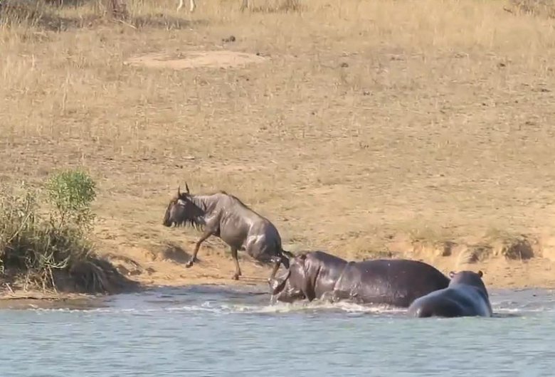Честно говоря, бегемотов мало волновала судьба антилопы, они лишь выгоняли лишних животных со своей территории. Да и судьба гну незавидная, с такой серьезной травмой она вряд ли сможет долго прожить и не стать чьим-нибудь обедом.