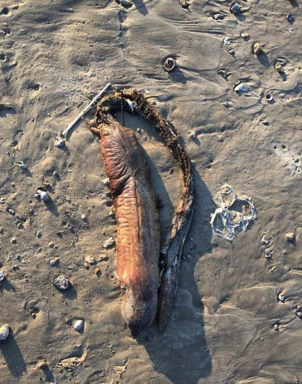 Загадочное морское существо было найдено гниющим на пляже в городе Техас-Сити после урагана Харви. Существо обнаружила Прити Десай (Preeti Desai) из National Audobon Society. Фотографии зубастого безглазого существа девушка выложила в Twitter, чтобы местные эксперты помогли опознать зверя. Биологи из Twitter предположили, что это какой-то вид угря или мурены.