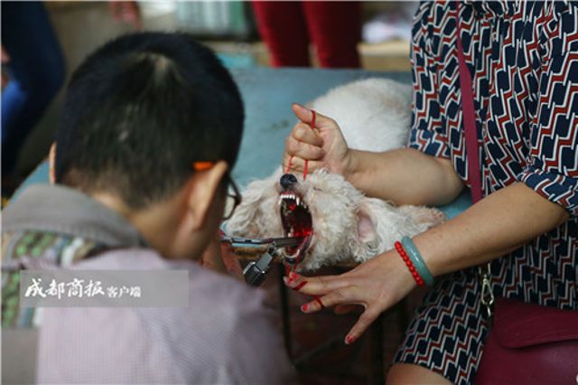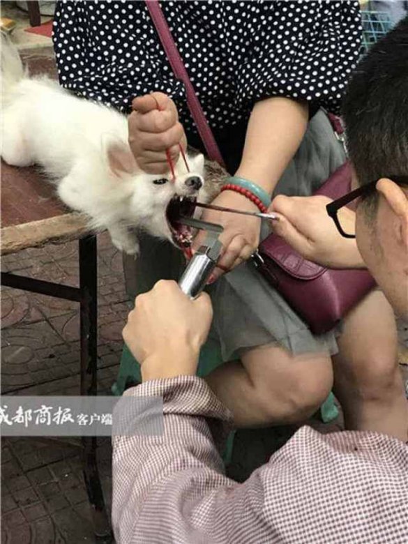 Предприимчивый владелец зоомагазина развернул на рынке китайского города Чэнду операционную и удалял голосовые связки у звонких собак прямо на улице. Владельцев животных не смущало, что он пользуется грязными инструментами и иглами, а асфальт под его ногами покрыт собачьей кровью и шерстью. Стоила операция по уменьшению звука лая от 50 до 80 юаней (8-12 долларов), в зависимости от размера собаки. Ветеринару-самоучке пришлось свернуть бизнес после того, как его деятельностью заинтересовалась полиция.
