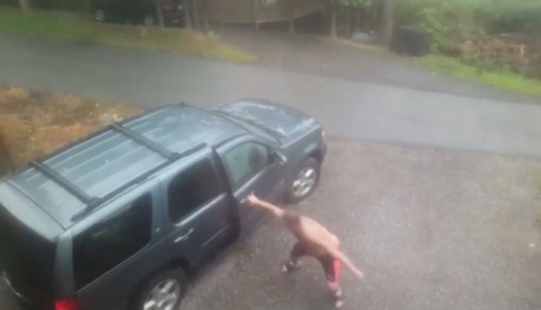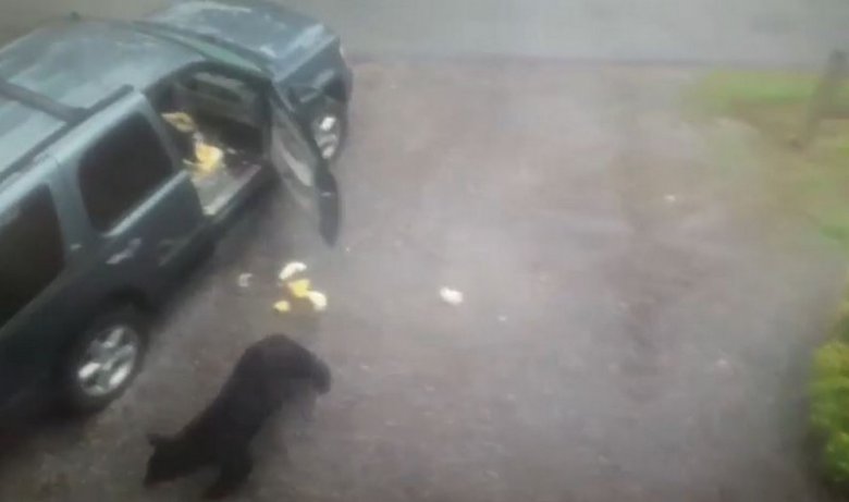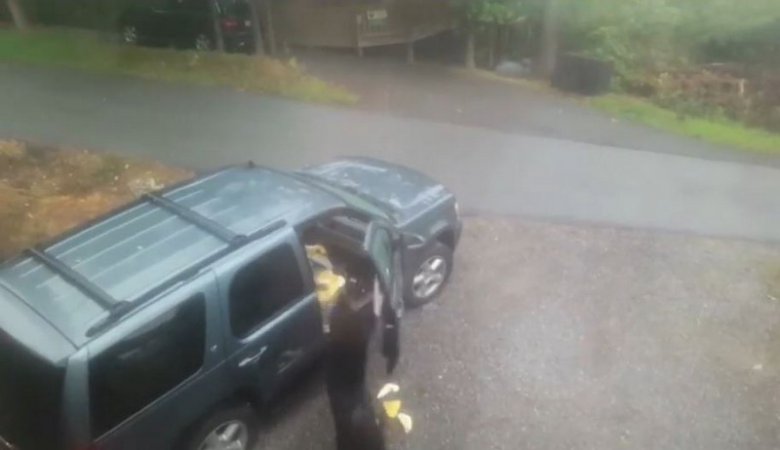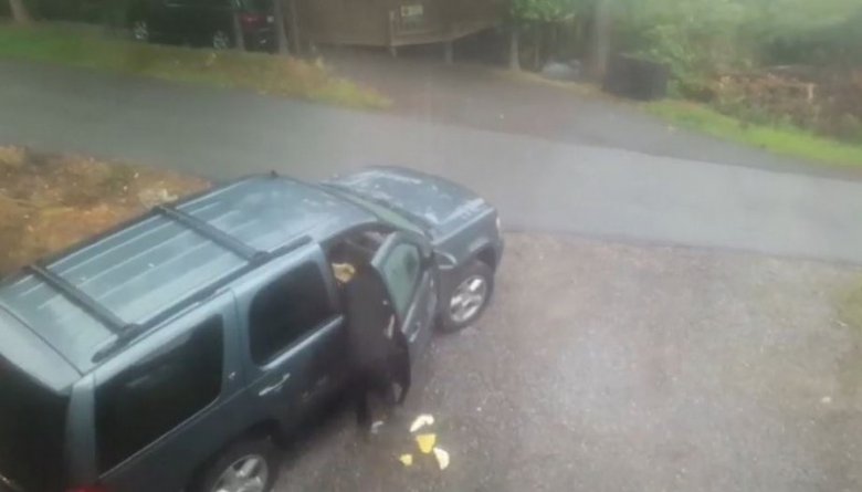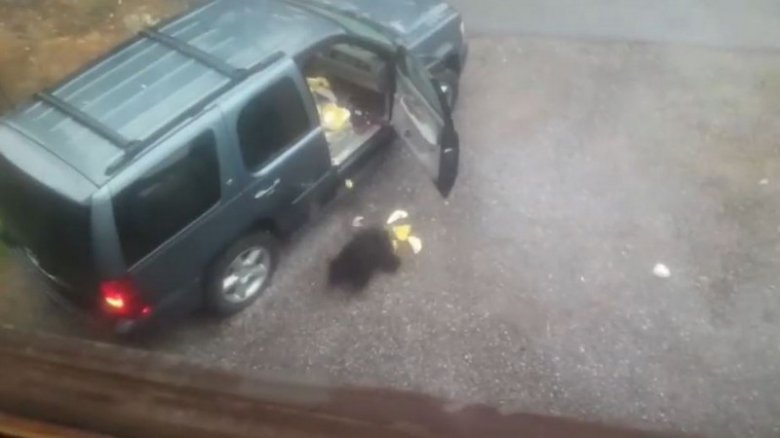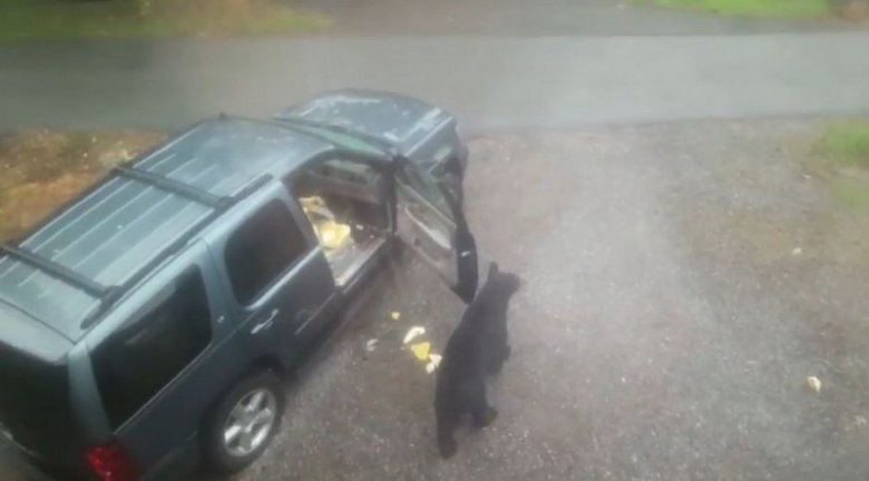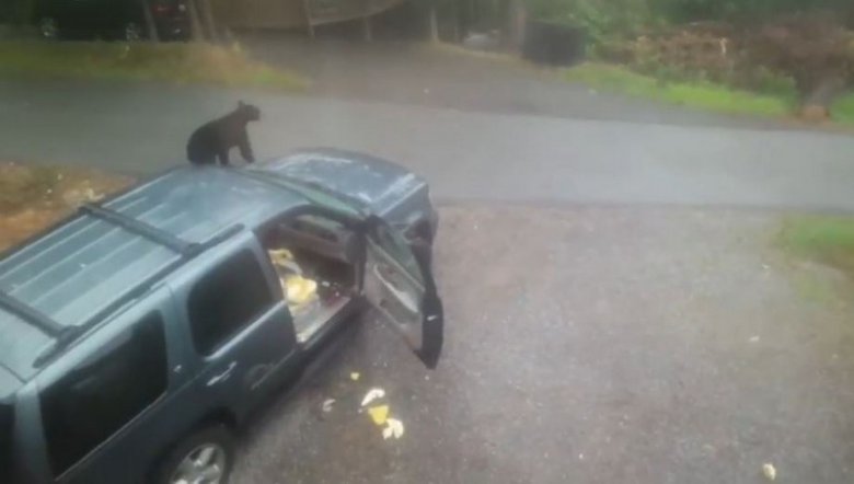 Курьезный случай был снят на камеру 11 сентября 2017 года в Пиджен-Фордж, штат Теннесси, США. Мужчина подошел к своему внедорожнику и обнаружил в салоне незваных гостей. Он открыл пассажирскую дверь и убежал, из салона выпрыгнула медведица и медвежонок. Животных видимо привлек запах оставленной в салоне автомобиля еды.