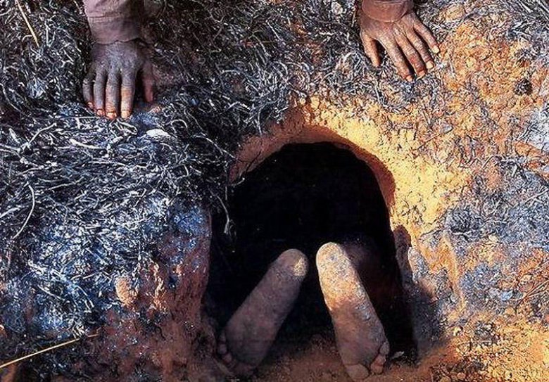 Битва закончилась. Один из помощников лезет в нору и забирает, оставшиеся без охраны яйца. Если их сварить на костре, они становятся настоящим деликатесом.