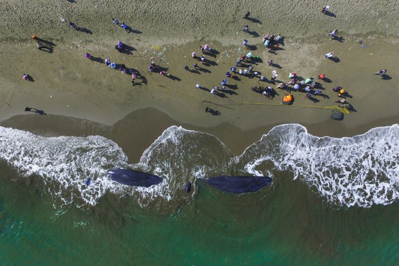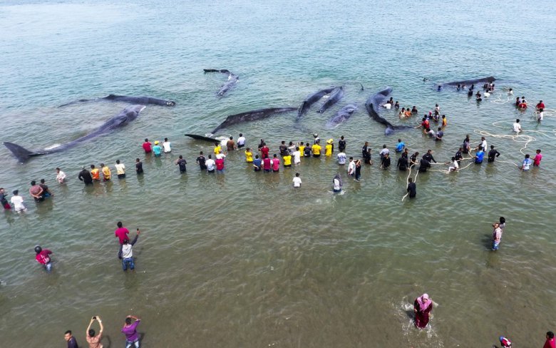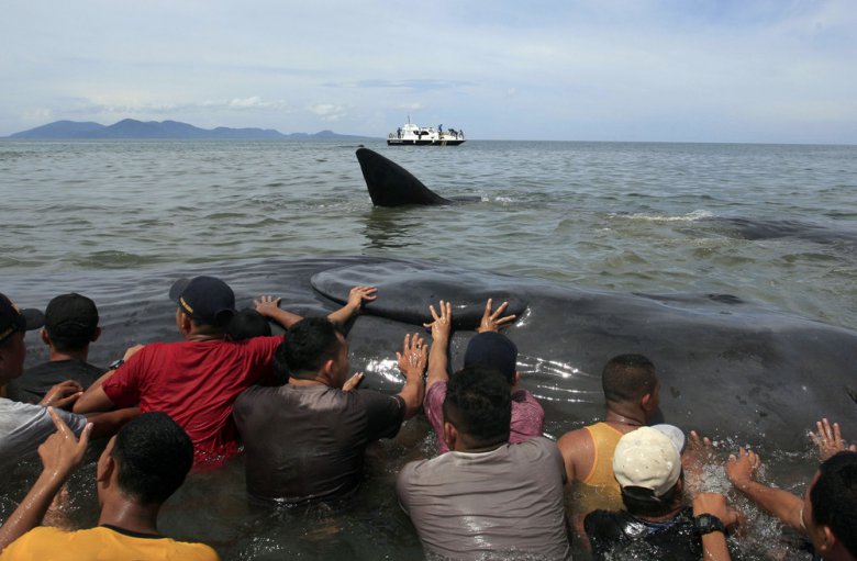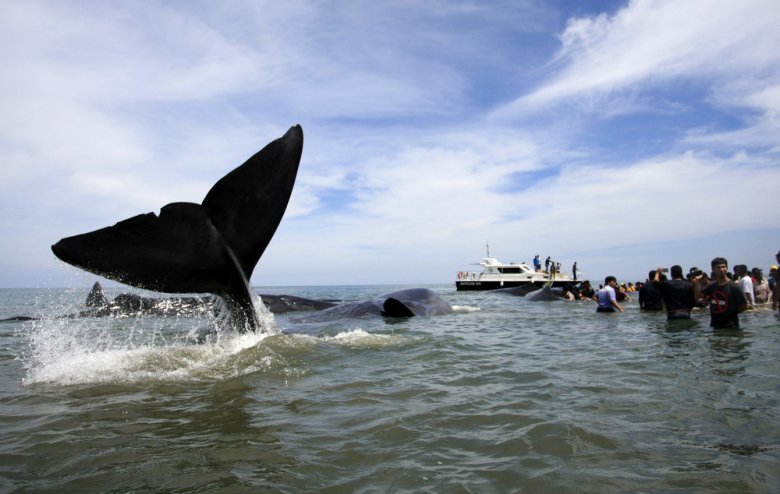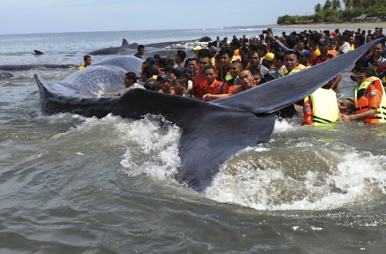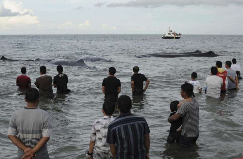 13 ноября 10 молодых китов попали на мель в индонезийской провинции Ачех. Это привлекло сотни зевак, которые стали фотографироваться на фоне умирающих млекопитающих. Прибывшие спасатели, местные рыбаки и другие сознательные граждане попытались вытолкать китов назад в океан. Спасти получилось не всех, 4 кита погибли.