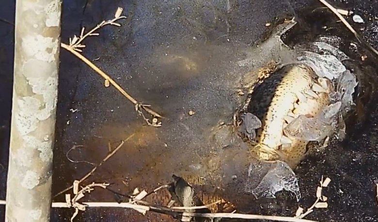 Аллигаторы вмерзли в реку в Северной Каролине