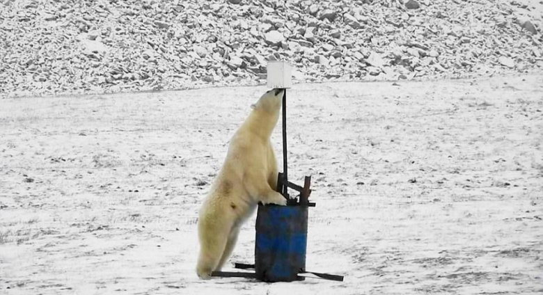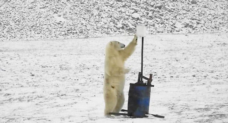Интересные кадры были сделаны на острове Врангеля в России. Этот удаленный форпост имеет самую высокую плотность белых медведей в мире — почти 600 по последним подсчетам. По всему острову расставлены камеры-ловушки и оборудование для измерения температуры. К одной из таких камер проявил интерес любознательный белый медведь, он словно пытался сделать селфи. Но, судя по полученным снимкам, мишке еще надо потренироваться в этом деле, кадры получились не очень.