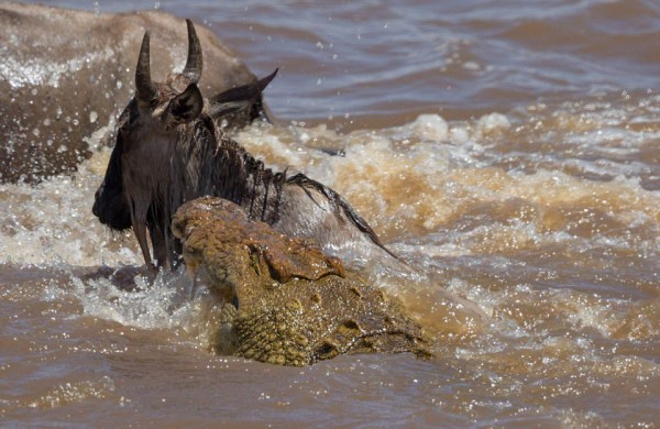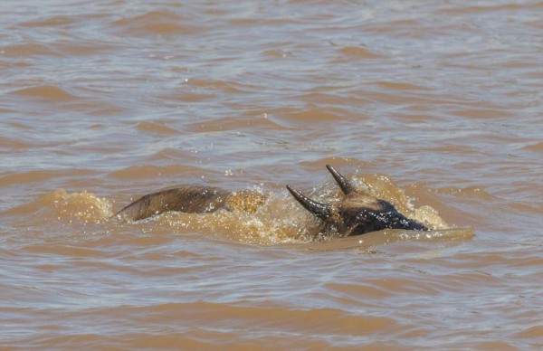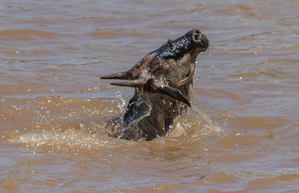Крокодил какое-то время плыл рядом, выбирая жертву на ужин. Затем 220-килограммовая рептилия схватила антилопа и утащила под воду, чтобы гну задохнулась.