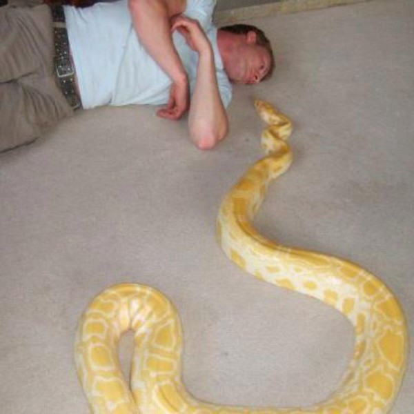 На днях была поставлена точка в загадочной смерти 31-летнего любителя экзотических животных Дэна Брэндона. Он был обнаружен мертвым 25 августа прошлого года в своей комнате в Черч-Крукхем, Великобритания. Рядом с телом мужчины находился 2,5-метровый питон. Полиция выяснила, что именно питон, которого Дэн растил с крохотных размеров, задушил своего хозяина.