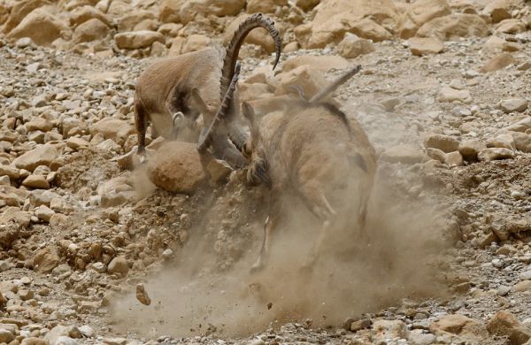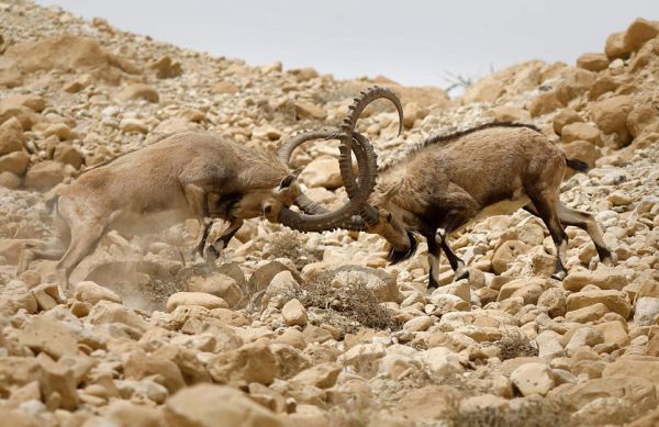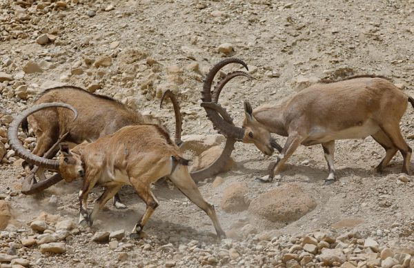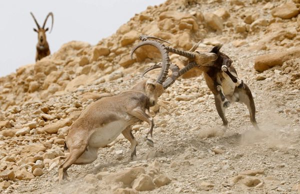 Все женщины любят внимание и самки нубийских горных козлов не исключение. Самцам приходится устраивать схватки во время сезона спаривания за право оплодотворить самку. Подобная схватка была снята на камеру в израильском заповеднике Эйн-Геди на берегу Мертвого моря. Бой длился около 30 минут, затем побежденный козел удалился с поникшей рогатой головой.
