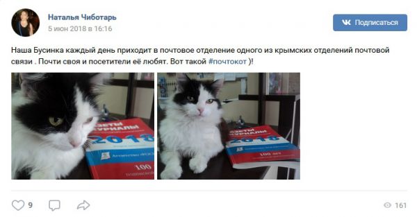 Как рассказывают работники почты, кот остался без хозяев, но не растерялся и отправился на поиски новых друзей. Правда, сначала он ходил около соседнего магазина, но потом понял, что поистине теплый и дружный коллектив ждет его именно на почте.