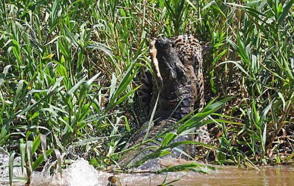 Обычно ягуары, когда они охотятся, стараются проявлять хитрость, чтобы одолеть свою добычу, но наш герой из видео в этом случае схватил каймана только лишь за нижнюю челюсть.