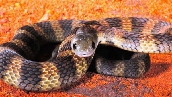 Второе ее название очковая змея. Достаточно крупного размера, длина может достигать от 1,4 до 2 метров, тело объемное. Окрас варьируется от темно-желтого до черного. Узнать кобру можно по рисунку очков на так называемом «капюшоне». Ее можно встретить в Средней и Юго-Восточной Азии, на островах Тайвань и Цейлон, в Индии. Если змея укусит человека, он сможет выжить только если в течении получаса получит противоядие. В течении первой минуты после укуса у пострадавшего наступает паралич. Но индийская кобра никогда не укусит без крайней необходимости. Не все знают, что она наносит предупреждающий удар. Рептилия раскачивается и сильно ударяет головой. Только после этого кобра может укусить.