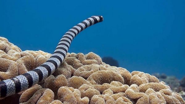 Эта змея предпочитает воду. Она небольшая по размеру, в длину достигает до 1 метра. Окрашена в желтый цвет с темно-зелеными полосами. Среда ее обитания – морская вода, под водой она может продержаться до 8 минут. Отлично плавает, ей очень нравятся рифы. Белчера распространена в Тихом океане, преимущественно на побережьях Таиланда, Филиппин и ряда других стран. Яд ее очень сильный, в 100 раз сильнее чем у тайпана. Однако морские змеи вовсе не опасны. Они нападают только на рыбаков, когда попадают в сети вместе с рыбой. По характеру белчеры очень спокойны, поэтому их хотели даже исключить из списка самых опасных змей.