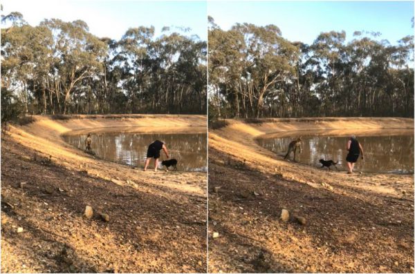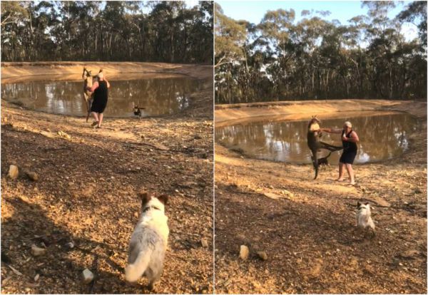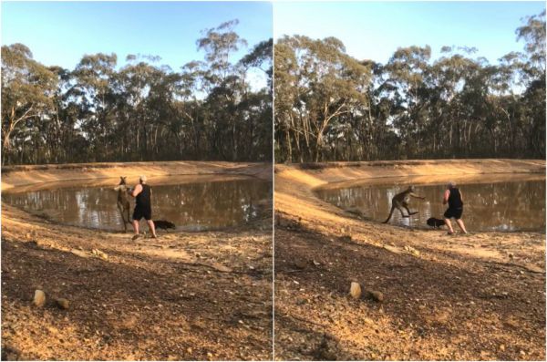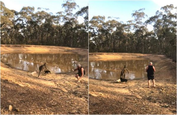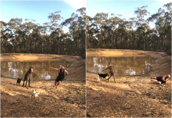 Даниэл Туохи выгуливал своих собак возле небольшого пруда на участке недалеко от дома в Бендиго, Виктория. Мужчина с банкой пива в руках увидел, как кенгуру приближается к собакам. Он бросился защищать своих пёсиков от агрессивного животного. Кенгуру в прыжке ударил мужчину в грудь задними лапами, тот упал, но пиво из рук не выпустил. Этот забавный момент сняла на видео дочь австралийца Бри и выложила его на своей странице в Фейсбук. Ролик посмотрели более 300 000 раз, а Даниэла назвали "Aussie legend".