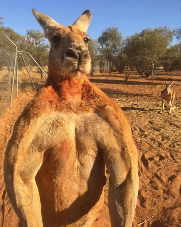 Кенгуру Роджер прославился в 2015 году, когда фотографии его мускулистого тела и огромных бицепсов распространились по интернету. Роджер был спасен Крисом Барнсом, владельцем приюта Кенгуру в Алис-Спрингс, Австралия, из сумки мертвой мамы. Самец красного кенгуру вырос до 200 сантиметров и весил около 90 кг, он с легкостью гнул металлические ведра мощными лапами и вступал в схватки с другими кенгуру из-за самок.