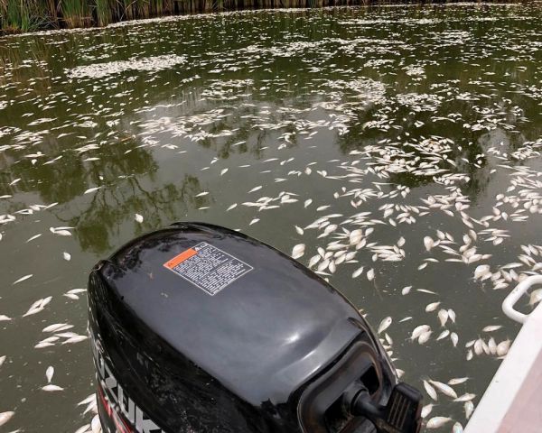 Тысячи рыб погибли в реке Дарлинг, Австралия. Местные жители говорят, что никогда не видели такой печальной картины. Гибели рыбы способствовала очень жаркая погода, цветение водорослей и низкий уровень воды. С каждым днем ситуация только усугубляется: мертвая рыба продолжает всплывать на поверхность реки, а вода остается мутной.