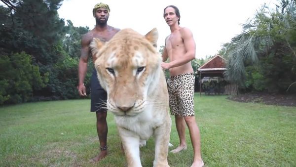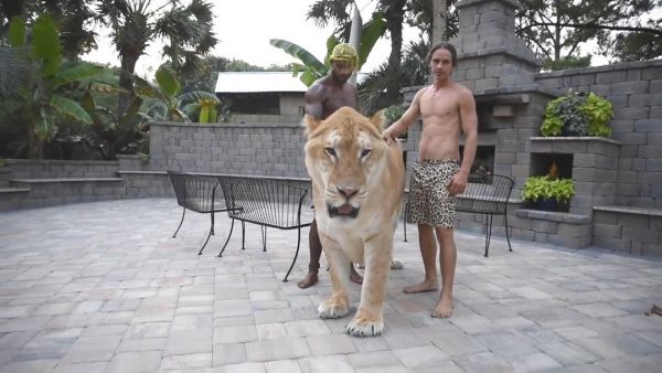 Майк Холстон, известный в социальных сетях под ником The Real Tarzann, выложил на своей странице в Instagram и канале YouTube видео, где он с приятелем прогуливается с огромным лигром. Это помесь льва и тигрицы по кличке Аполлон, который весит 319 кг. Огромная кошка была замечена с Майком и защитником дикой природы Коди Антлом в Миртл-Бич, Южная Каролина. На видео говорится, что это крупнейшая кошка на планете. А пользователи социальных сетей сравнили Аполлона с саблезубым тигром, который вымер 42 000 лет назад.