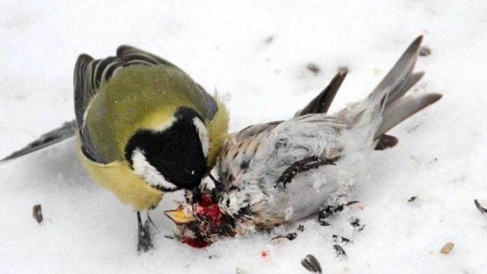 ...сало, как корм животного происхождения, употребляют в пищу, в основном, насекомоядные и всеядные птицы. Синицы относятся к насекомоядным. Но мало того, синичка может запросто убить воробья например для пропитания.Не верите? Смотрите...
