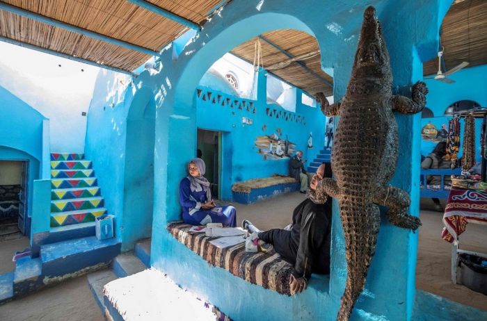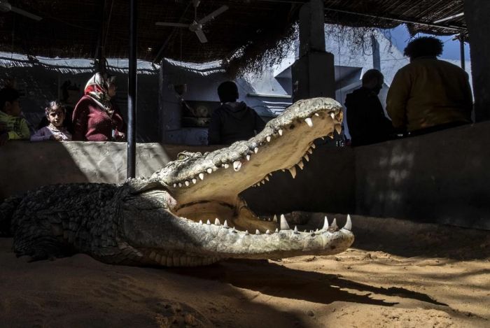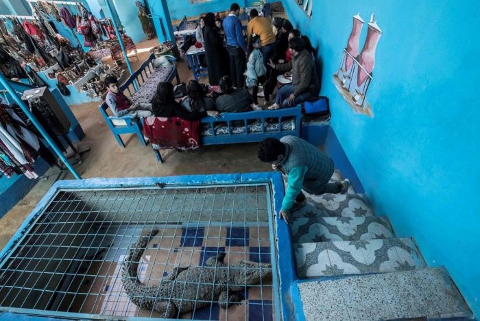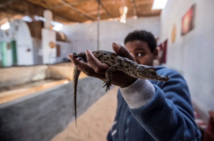 Мужчины ловят крокодилов, когда они совсем маленькие. Они живут и заботимся о крокодилах. Со временем рептилии теряют свою агрессивность. Взрослые экземпляры могут достигать семи метров в длину.Посмотреть на крокодилов и сфотографироваться приезжают как египтяне, так и туристы из разных стран мира.