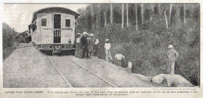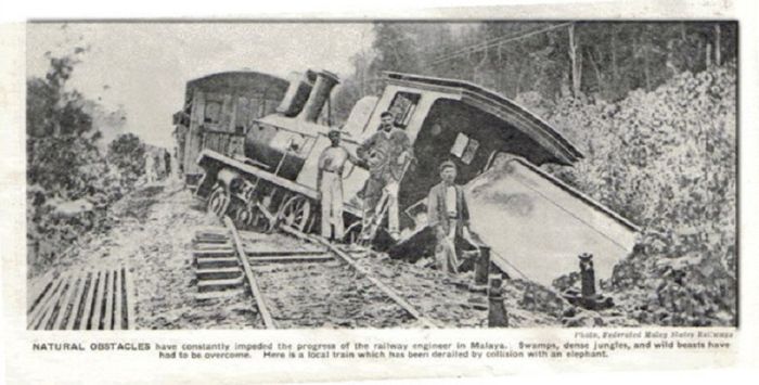 В 1894 году поезд в Телук Интане сбил слонёнка, который, видимо, случайно забрёл на пути. Буквально на следующий день паровозу, который возвращался из Перака, преградил путь взрослый слон-самец. Машинист увидел огромное животное, которое неподвижно стояло на пути лицом к приближающемуся поезду. На улице смеркалось и видимость была не очень ясной. Видя, что затормозить состав не успеет, машинист подал звуковой сигнал, но слон не сдвинулся с места. Через пару секунд произошло столкновение. Поезд сошёл с рельсов. В результате погибло двое людей и само животное.