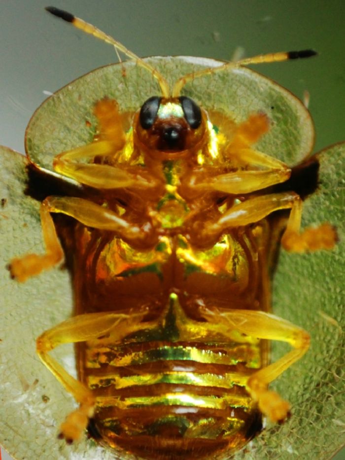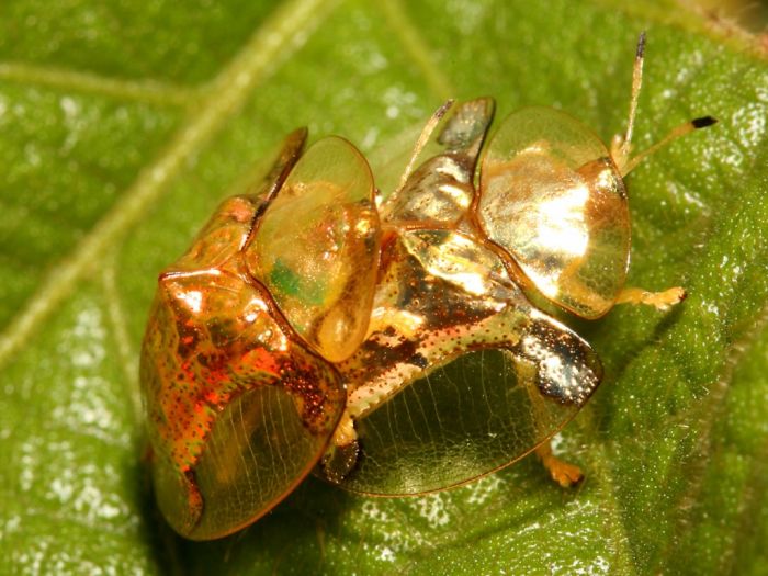 Эти жуки узнаваемы благодаря своему золотому окрасу, но они также обладают способностью изменять цвета в любое время, когда им это необходимо. Это изменение происходит благодаря микроскопическим клапанам, управляющим уровнем влажности под их панцирем.