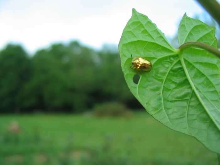 Также удивительным фактом является то, что жуки золотая черепеха питаются исключительно зелеными листьями Морнинг Глори. Название этого жучка появилось из-за потрясающей схожести с панцирем черепахи.
