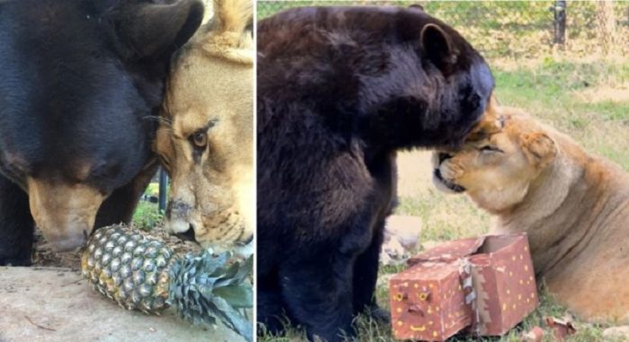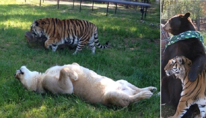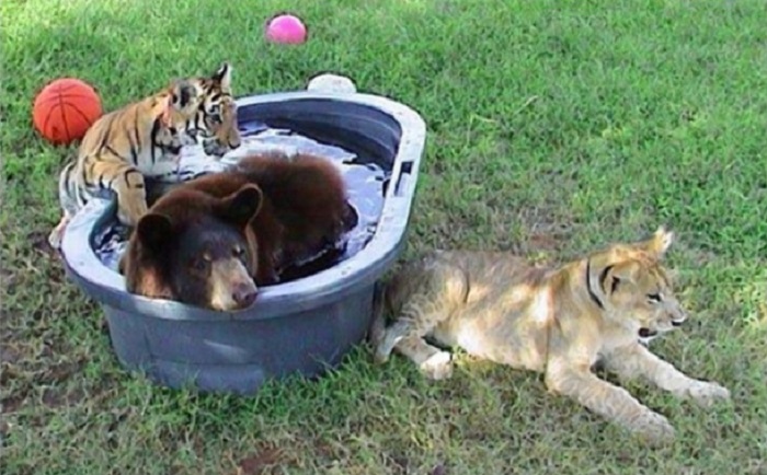 Эта удивительная и трогательная история в своё время облетела весь мир. В один из американских приютов для животных привезли спасенных из рук живодера диких зверей. Тигр, лев и медведь лишь чудом выжили и испуганно жались друг к другу. Оказавшись в безопасности, они все время держались вместе. Лео, Балу и Шер-Хан – так окрестили сотрудники приюта этих «братьев» – много лет были неразлучны. Давайте вспомним эту историю и узнаем, как сложилась судьба знаменитых зверей.