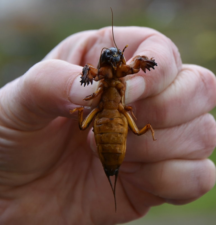 Конечно, здесь уже и далекие от энтомологии миряне могли бы понять, что вся эта кошмарная конструкция — всего лишь сверчок-переросток с расширенным функционалом. Относится всё семейство медведок к славному отряду прямокрылых, куда входят и сверчки, и кузнечики, и саранча. Латинское написание — это большой спойлер для всех, кто в теме: Gryllotalpa буквально переводится как сверчок-крот. А медведкой у нас его зовут, вероятнее всего, за бурый окрас, мощное сложение и «мех», который покрывает шестилапого «зверя».