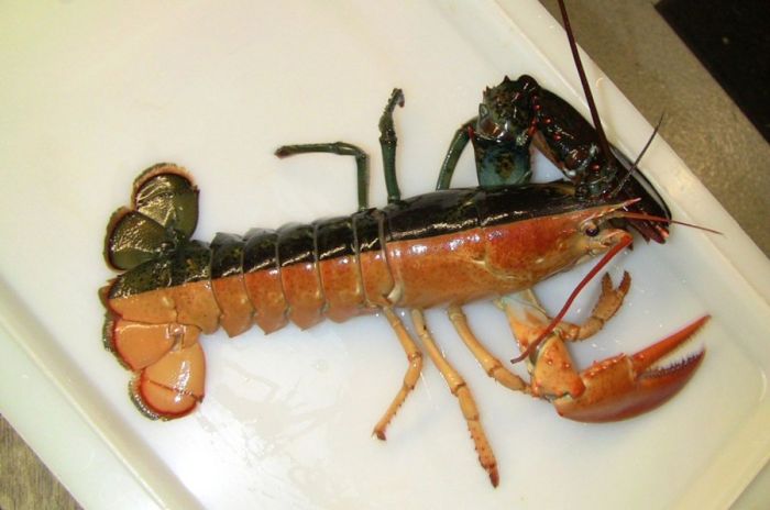 Этот двухцветный омар был пойман где то в 2009 году в заливе Бар американского штата Мэн. Ален Робинсон, поднявший это чудо природы с морского дна, был настолько удивлен, что сначала не поверил своим глазам – омар выглядел наполовину сваренным.