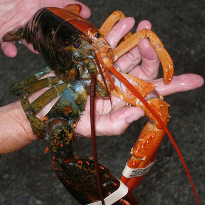 Научно-исследовательский институт в Портленде, который получил двухцветного омара в подарок, сообщает, что подобная цветовая аномалия встречается среди особей данного вида один раз на 50 миллионов и более. Самыми редкими цветными омарами считаются белые омары, которые, по сообщениям, попадаются один раз в 100 миллионов.