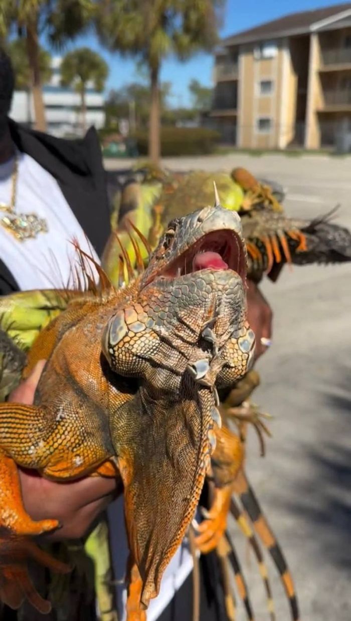 Из-за резкого похолодания, которое обрушилось на штат Флорида, сотрудники Комиссии по охране рыбы и дикой природы (FWC) ежедневно собирают более тысячи игуан. При падении температуры до нуля градусов рептилии теряют контроль над мышцами. В таком состоянии оцепенения они часто падают с деревьев прямо на землю.