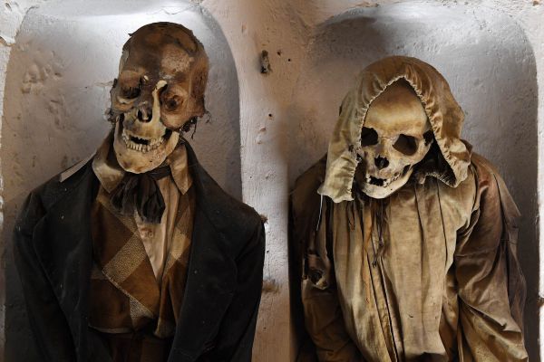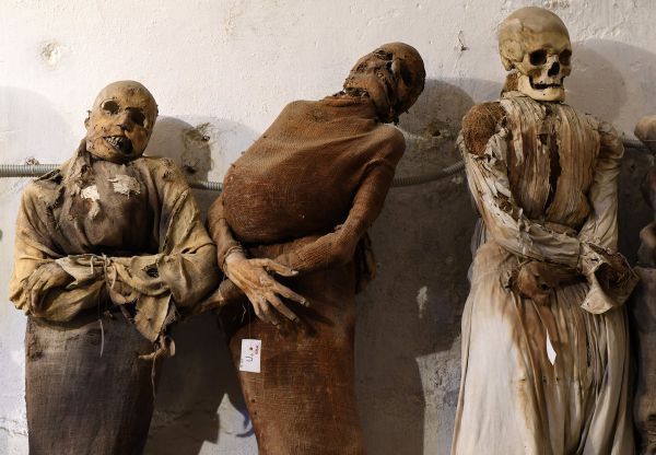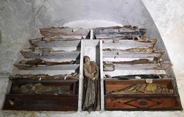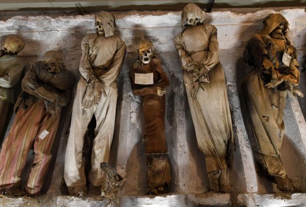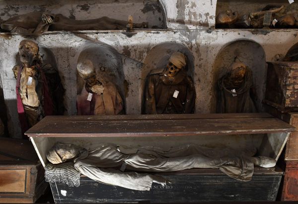 Катакомбы Капуцинов в Палермо, Сицилия, Италия, содержат около 8000 трупов и 1252 мумий. Монастырь Капуцинов перерос свое первоначальное кладбище в 16 веке, и монахи начали раскапывать крипты под ним. В 1599 году монахи мумифицировали священника по имени Сильвестро Губбио и поместили его в катакомбы. Последние захоронения были сделаны в 1920-х годах, а катакомбы превратили в музей, управляемый монахами, которые позволяют людям встретиться лицом к лицу с мертвыми. На Сицилии также планируется открыть исследовательскую лабораторию по мумификации, которая была распространена в деревнях по всему острову.