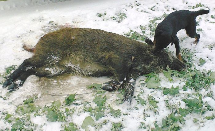 Эти собаки видят жертву для буллинга во всем, что подает какие-либо признаки жизни. Бесстрашный немец способен и лису задушить, и кабана загнать, и зад медведя разорвать в клочья. Притом размеры у собаки даже не средние — максимум малыша-ягдтерьера 50 сантиметров в росте и 10 кило веса.